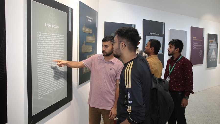 Bangladeshis enchanted by China's cultural treasures from Lingjiatan in photo exhibition